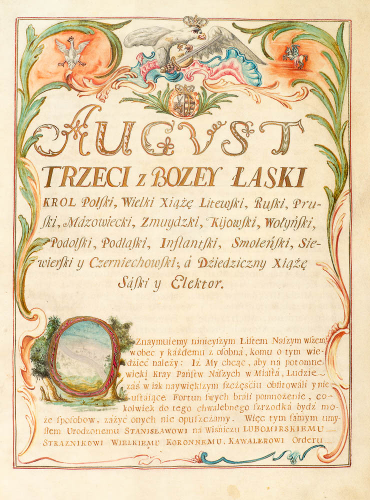 70. August III. Przywilej dla marszałka wielkiego koronnego S. Lubomirskiego. 1761.