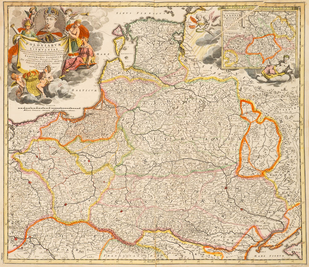 129. J. B. Homann. Mapa Polski i Litwy (z portretem Augusta II). 1705.
