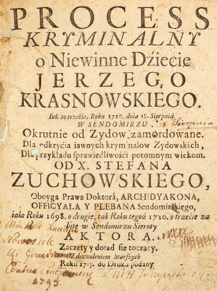 69. S. Żuchowski. Oskarżenie Żydów sandomierskich o mord rytualny. 1720.
