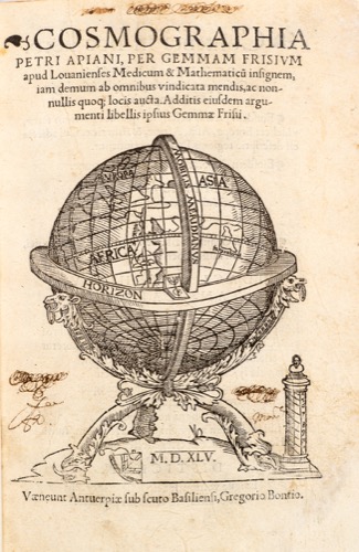 22. P. Apianus. Cosmographia. 1545. Z pierwszym zarysem Ameryki.