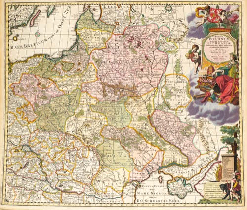 124-130. Dekoracyjne mapy Polski i Litwy, Pomorza, Bałtyku.