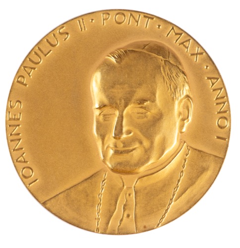 287. Złoto, srebro, brąz. Medale papieży: Pawła VI, Jana Pawła I i Jana Pawła II.