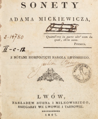 527. A. Mickiewicz. Sonety. 1827. Wydanie pirackie.