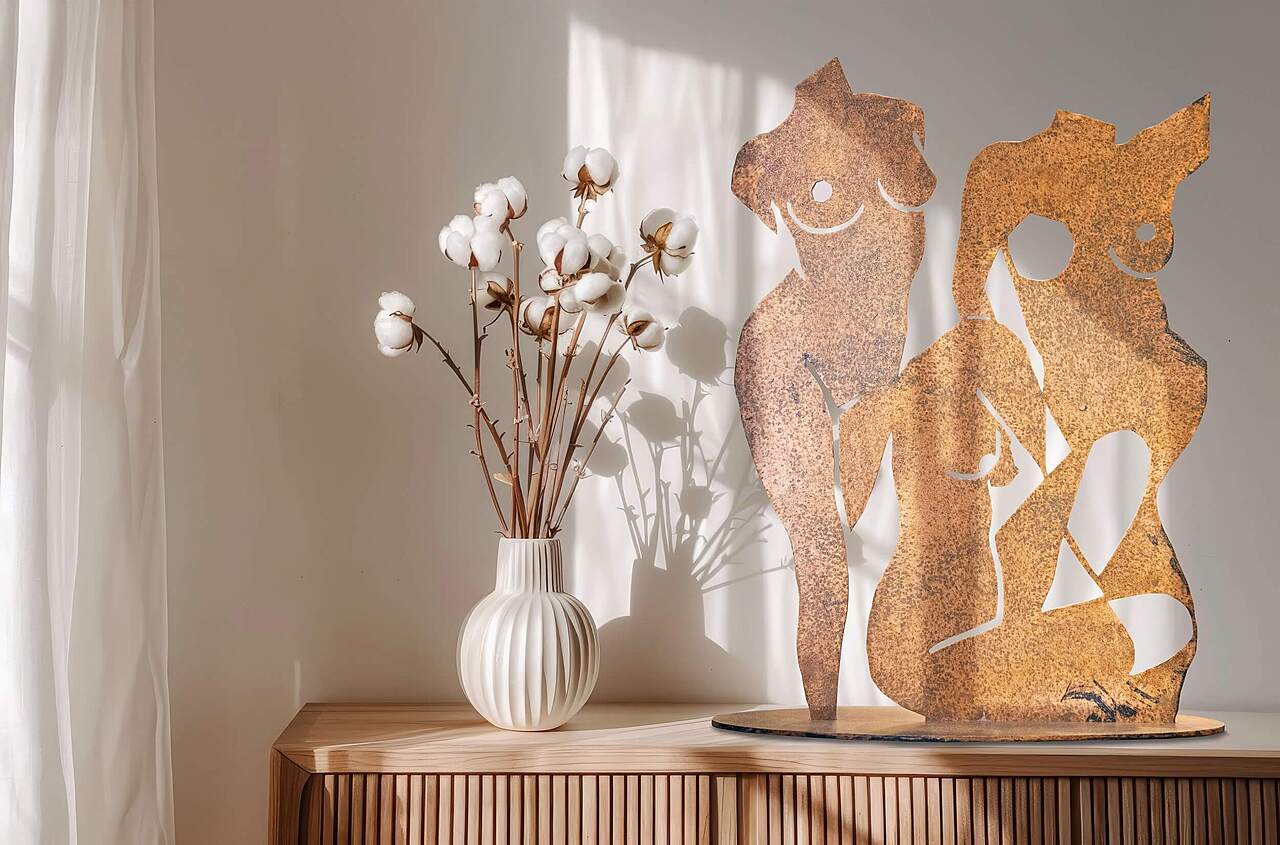 Obiekt balansuje między sztuką a designem – jest zarówno dziełem o silnym ładunku emocjonalnym, jak i dekoracyjnym elementem wnętrza. W jego strukturze można dostrzec dialog między ciałem a przestrzenią, między trwałością metalu a efemerycznością ruchu. To forma, która – jak mówią twórcy – nie dominuje, lecz współbrzmi z otoczeniem.
