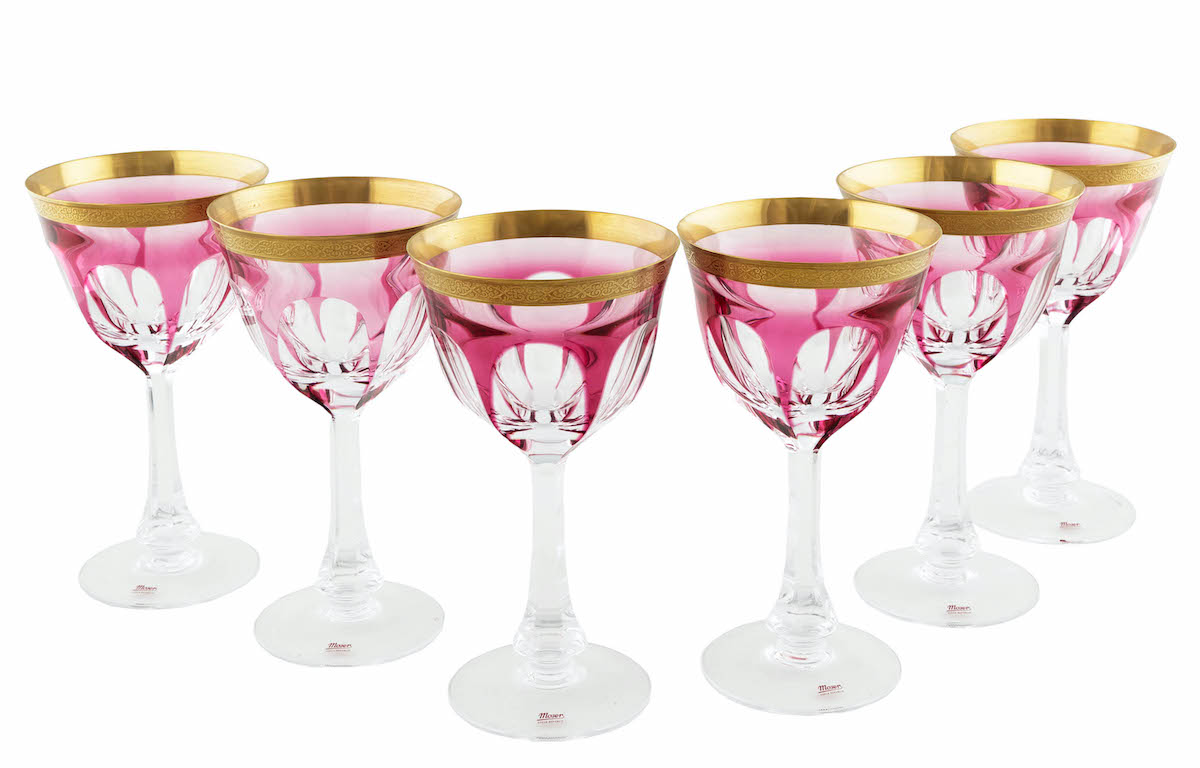 Katalog dopełnia luksusowe rzemiosło artystyczne, w tym komplet sześciu kryształowych kieliszków Lady Hamilton z renomowanej czeskiej manufaktury Moser (poz. 153). Przezroczyste szkło o różowym zabarwieniu, a także delikatna dekoracja oroplastyczna nadają im wyrafinowany charakter.