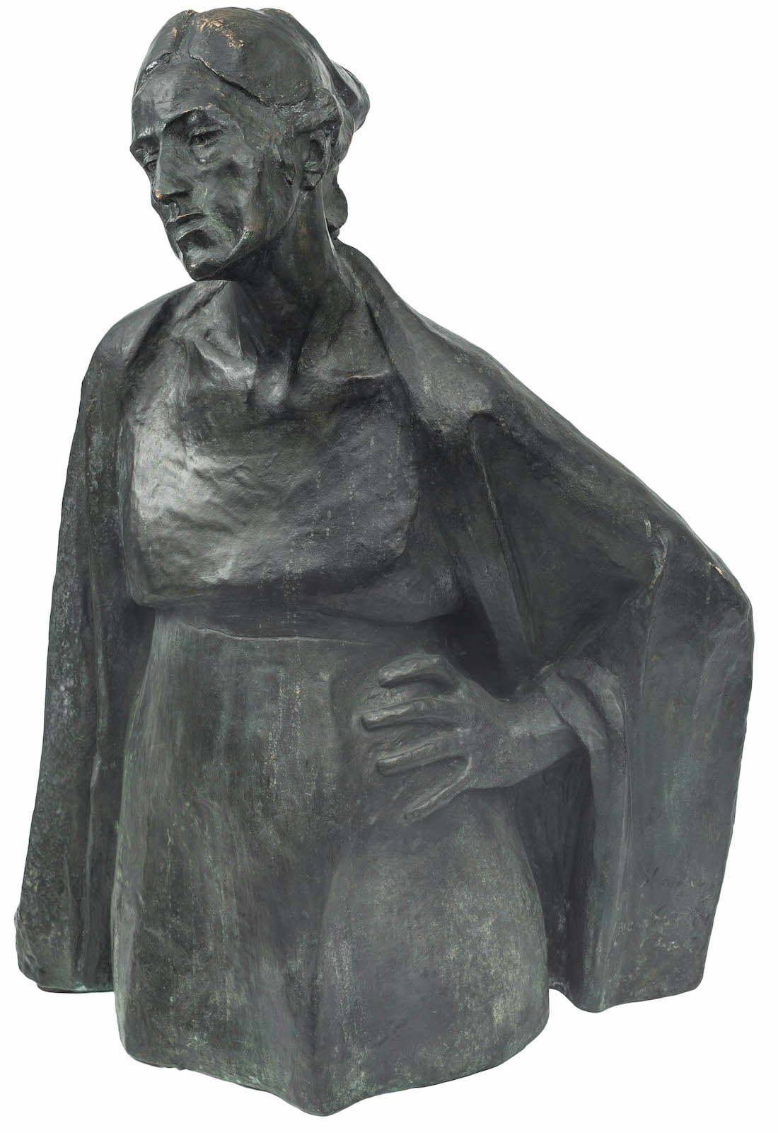 Znakomitym przykładem portretu z początku XX wieku jest dzieło Xawerego Dunikowskiego (poz. 2), datowane na lata około 1915–1920. Przedstawiona w półpostaci modelka została ujęta frontalnie, z wyraźnym skupieniem na rysach twarzy. Syntetyczne ujęcie formy podkreśla rzeźbiarskie myślenie twórcy o bryle i strukturze przedstawienia.