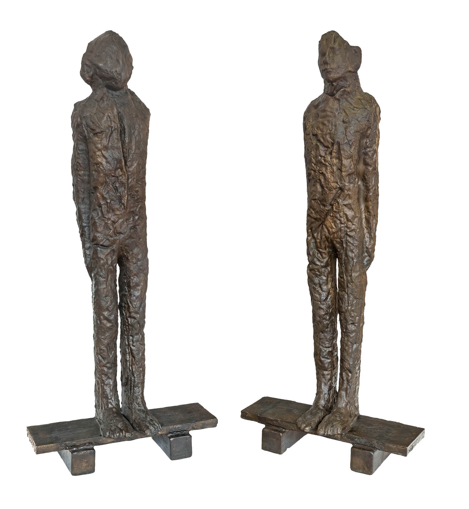Jedną z najważniejszych pozycji aukcji są rzeźby „Piotr i Paweł” (poz. 1). Magdalena Abakanowicz, uznawana za jedną z najwybitniejszych rzeźbiarek XX wieku, w swej twórczości stworzyła własny, rozpoznawalny język rzeźbiarski oparty na napięciu między formą ludzkiej sylwetki a jej anonimowością. Prezentowane prace, należące do dzieł muzealnej rangi, ilustrują charakterystyczną dla niej refleksję nad kondycją człowieka.