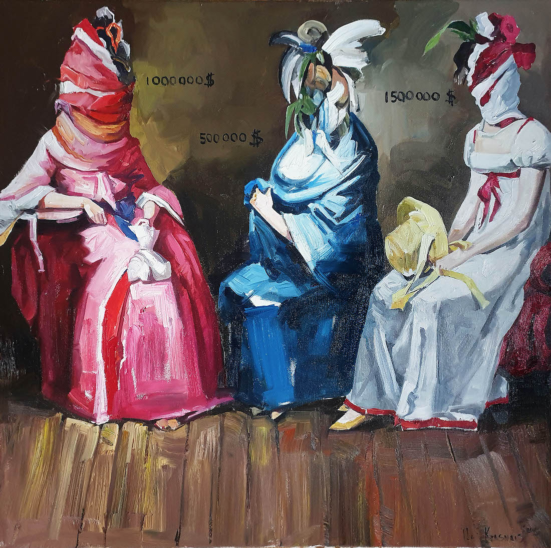 W części poświęconej sztuce najnowszej znalazła się prowokacyjna praca grupy The Krasnals „Kociaki w workach For Sale / Targ Niewolnic, 2026” (poz. 36). Dzieło stanowi ironiczny komentarz do współczesnego świata sztuki i w przewrotny sposób nawiązuje do znanych reinterpretacji portretów historycznych.