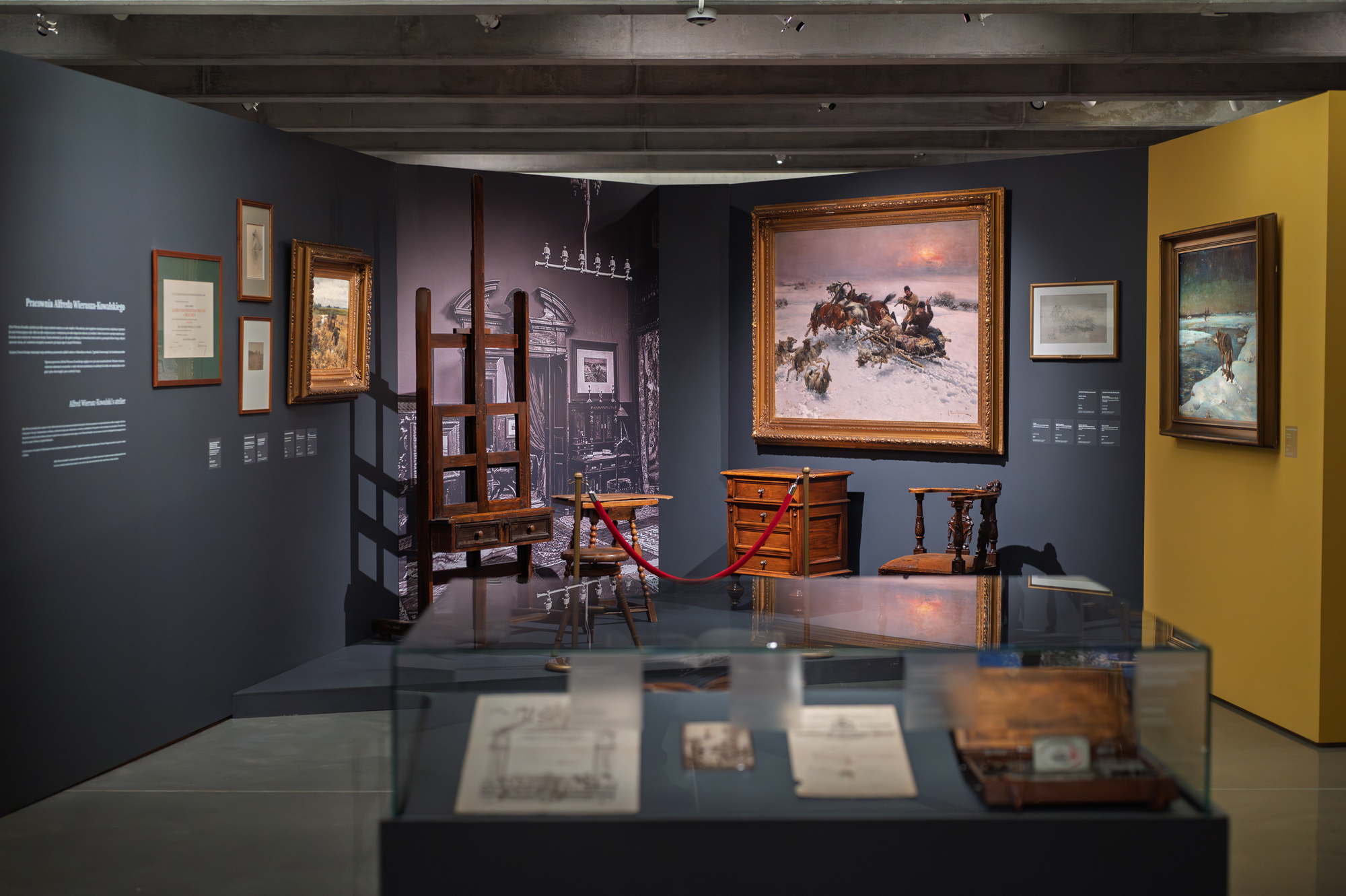 Jednym z najbardziej magnetycznych punktów ekspozycji są rekonstrukcje pracowni Władysława Czachórskiego i Alfreda Wierusza-Kowalskiego. Pozwalają zajrzeć do środka ich codzienności: zobaczyć autentyczne palety, meble, szkice, rekwizyty, przedmioty osobiste. Dla części artystów pracownia była przede wszystkim warsztatem, gdzie w pocie czoła powstawały nowe kompozycje; dla innych artystyczne studio pełniło jednocześnie funkcję salonu do dyskusji oraz przestrzeni wystawienniczej - naturalnie o komercyjnej roli.