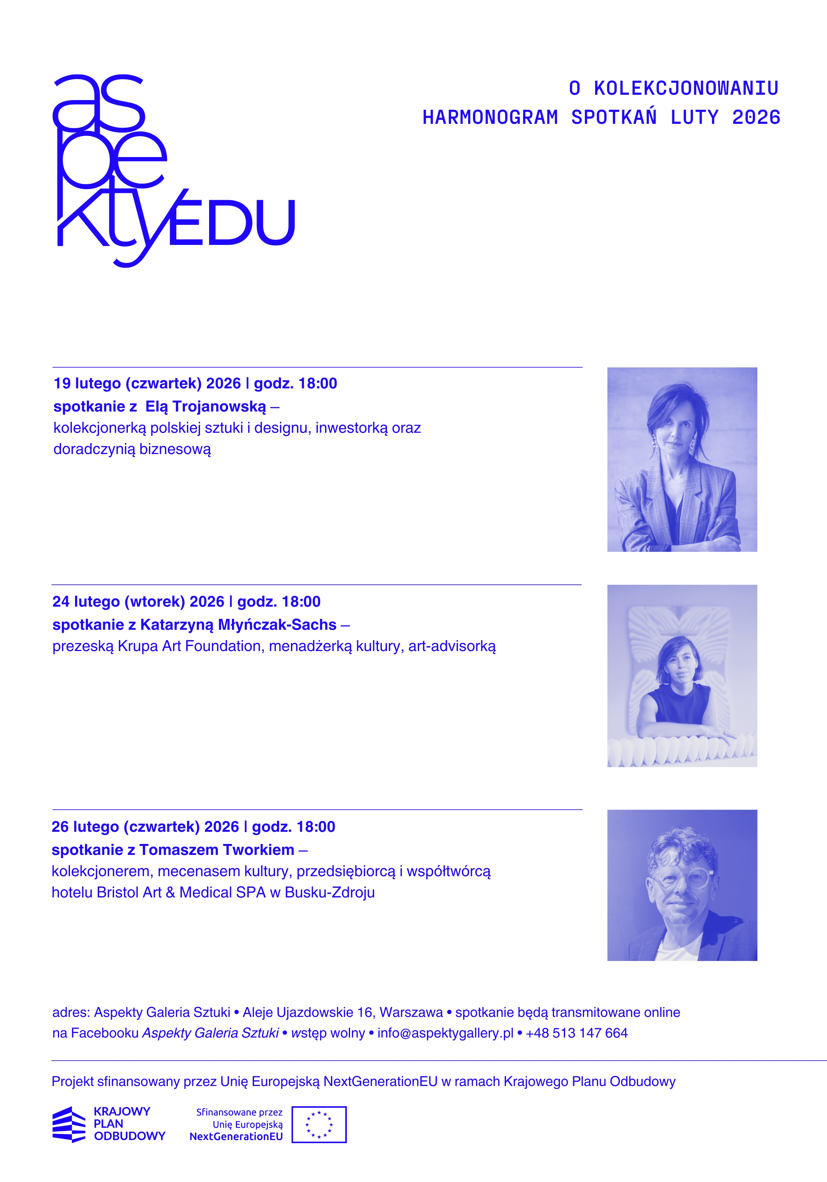Galeria Aspekty w ramach działań AspektyEDU realizuje projekt „Zbiory i wiedza: cykl spotkań o prywatnym dziedzictwie” – ogólnopolski program edukacyjny poświęconego roli prywatnych kolekcjonerów w ochronie i upowszechnianiu dziedzictwa kulturowego.