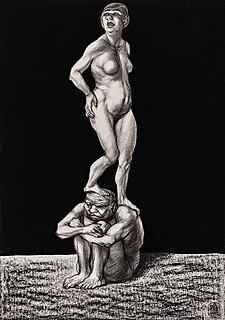 Węgiel, kredka, ołówek, papier; 43 x 31,5 cm (w świetle ramy)