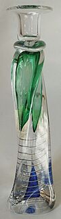 Szkło bezbarwne, wtopione kobaltowe, zielone i nić szklana, wys. 32 cm