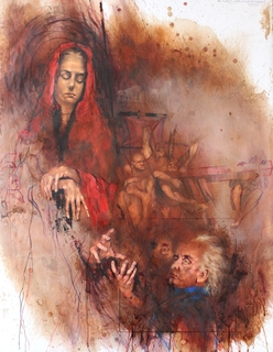 technika mieszana, płótno, 130 x 100 cm (w oprawie 150 x 120 cm),