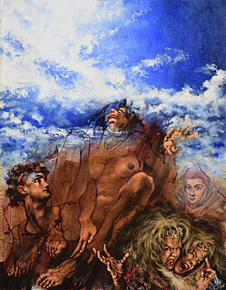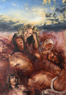 technika mieszana, płótno naklejone na płytę, werniks, 130 x 100 cm