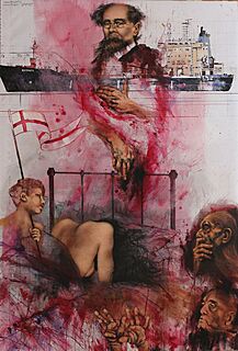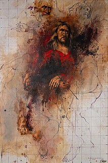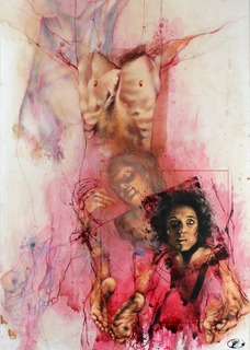 olej, flamaster, papier foliowy naklejony na płytę; 130 x 95 cm;