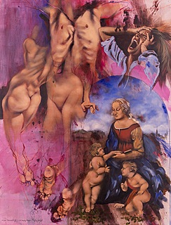 olej, flamaster, papier foliowy naklejony na płytę; 130 x 96 cm;