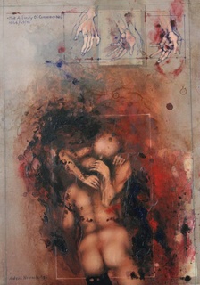 technika mieszana na kartonie, 70x50 cm, oprawiony