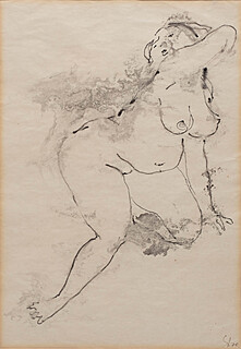 tusz lawowany, papier, 40,5 x 28 cm w św. passe-partout