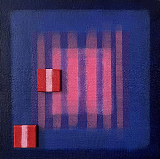 technika mieszana (olej, kolaż: elementy drewniane), płótno, 15 x 15 cm,