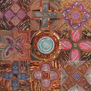 opisany na odwrocie: Agata Dorobek z cyklu OGRODY akryl/collage 2015 102 cm x 75,5 cm