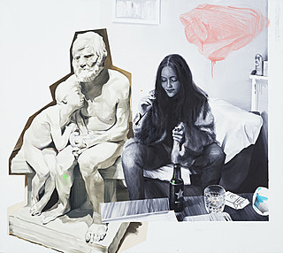 na odwrocie wklejka z opisem: Agata Kus / Hounds of Love II / 46 x 34 cm / drawing, collage / pen, …[?], photo / 2013 (drukiem)