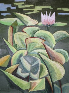 sygn. l.d.: Bykowska’16, opisany na odwrocie: Jeziorko grążeli - olej Agnieszka Bykowska - 2016