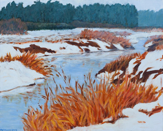 sygn. l.d.: Bykowska 2015, opisany na odwrocie: Roztopy - olej Agnieszka Bykowska 2015