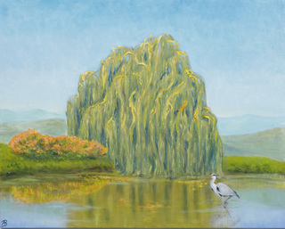 opisany na odwrocie: Pejzaż z wierzbą - olej Agnieszka Bykowska 2020