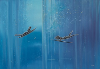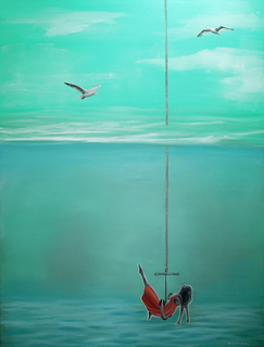 sygn. p.d.: NOSEK, opisany na odwrocie: GETTING A LITTLE AIR OIL ON CANVAS 2017 AGNIESZKA NOSEK