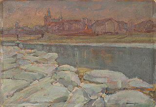 Opisany na odwrocie: "Kry na Wiśle | w głębi Wawel | Aleksander Boba"