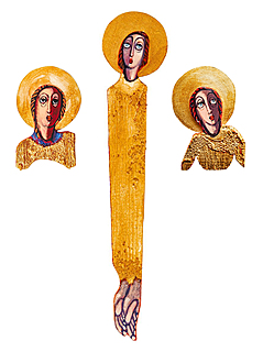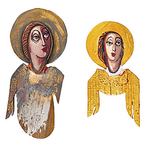 drewno polichromowane, złocone, 122 x 52 x 4 cm