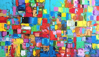 olej, płótno, 70 x 120 cm (2 płótna o wymiarach: 70 x 60 cm),