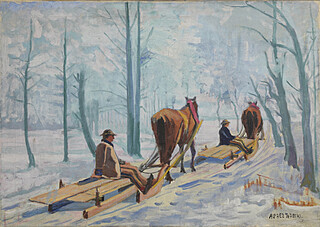 na odwrocie, na krośnie tytuł: Po drzewo do lasu (ołówkiem).
