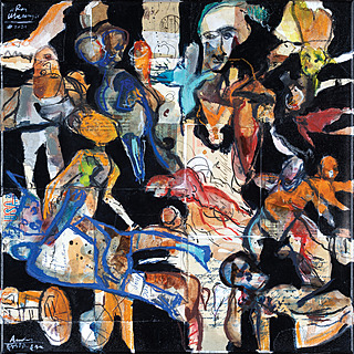 technika mieszana (olej, akryl, emalia, cement), płótno, 80 x 60 cm,