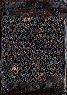 łupiny pistacji, enkaustyka, użyta koperta, płyta