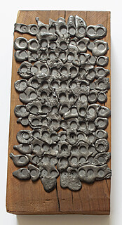 ołów, technika własna/deska, 18 x 10 x 5 cm, na odwrocie stempel wywozowy oraz pieczęć Galerii Muzalewska