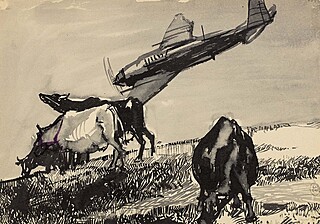 gwasz, papier; 28 x 41 cm (w świetle ramy);