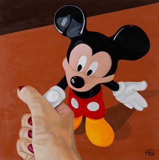 sygnowany, datowany i opisany na odwrociu: 'Anna Franczuk | "Hello Mickey!" | Akryl na płótnie | 70 x 70 cm | 2019 r.'