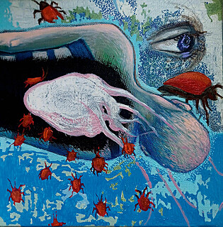 technika mieszana (olej, kolaż), płótno, 80 x 80 cm,
