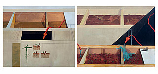 olej, płótno, 60 x 120 cm (całość; 2 kompozycje o wymiarach: 60 x 60 cm),