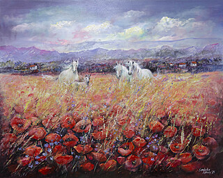 technika mieszana (akryl, olej, szlagmetal), płótno, 60 x 80 cm,