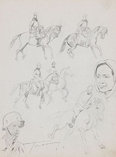 cześć szkiców na klejonych kartkach, cześć opisanych, sygnowanych