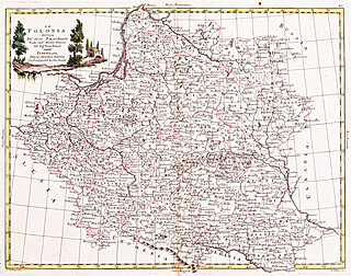 szczegółowa mapa Polski centralnej, Wenecja, 1782 r., miedzioryt kolorowany w epoce