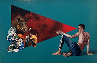 sygnowany na odwrocie: '"DZICZ", OLEJ, PŁÓTNO | 2024 | A. Wawrzkiewicz'