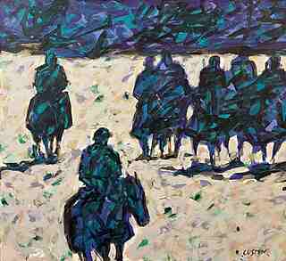 Sygn. p. d.: Lustyk; sygn., dat., opisany na odwrocie: BOGUSŁAW LUSTYK/ „DON QUICHOTE”/ akryl płótno 2019 /60 x 90 cm 2019/ B. Lustyk