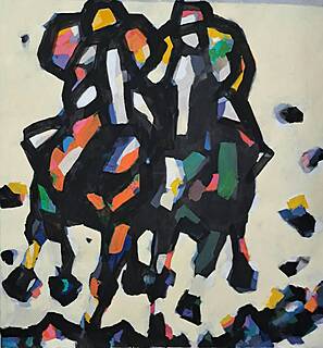 Sygnowany p.d.: Lustyk; na odwrocie: Bogusław Lustyk / „Z nocnej wracali wycieczki” / acrylic / płótno Dyptyk / część 2 / 2014 / B. Lustyk