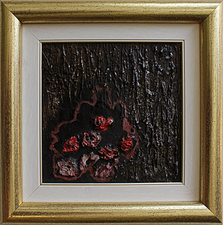 olej, relief, płyta pilśniowa, technika mieszana