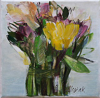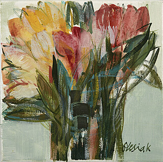 gwasz, werniks na płótnie, 20 x 20 cm, sygn.