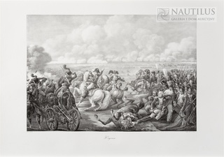 Litografia; wym. komp.: 300 x 435 mm, plansza: 440 x 595 mm, za- chowane pełne marginesy; sygn. pł. l.d.: Gros pinx, p.d.: Litho. De C. Motte; w środku tytuł: Wagram. Pęknięcia dolnego marginesu...