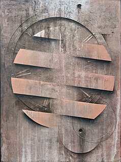 sygnowany na odwrocie: 'DANIEL KRYSTA | tyt: "UW12" | tech. mieszana na płótnie | 70 x 120 cm | 2011'